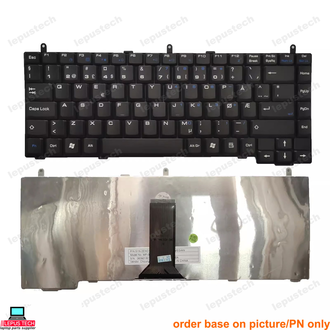 The same model of keyboard is supplied by different manufacturers, and the product images only show one manufacturer with the same quality. The manufacturer PN and brand label of the product you receive may be different from what we shows, but we guarantee that the quality of the product sent is the same as the displayed and the model is compatible.