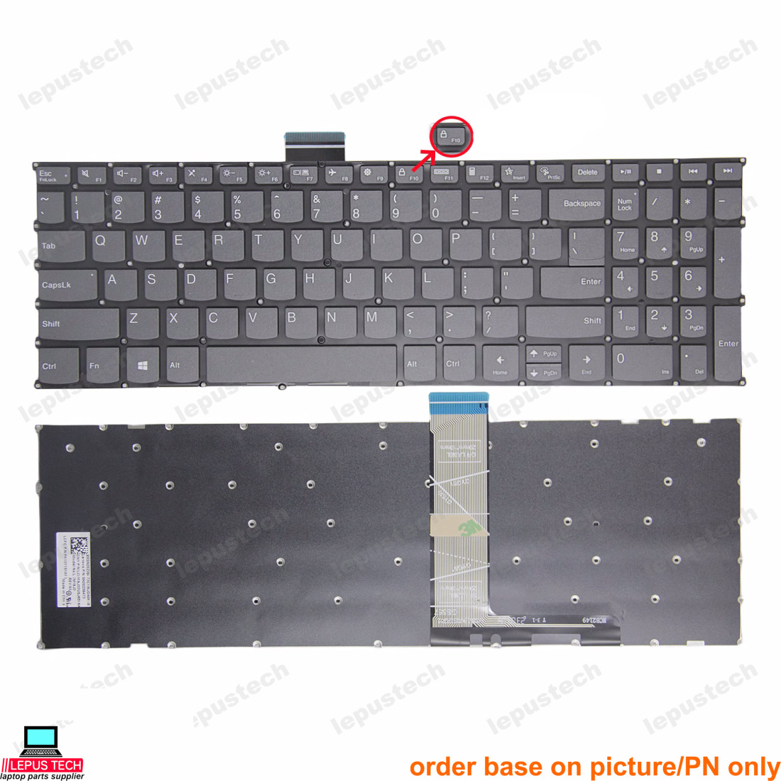 Lenovo IdeaPad Slim 3 15ABR8 15AMN8 15IAH8 15IRH8 15IRU8 gray F10 lock US keyboard